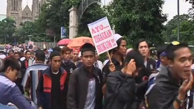 ทหารและตำรวจถูกส่งลงพื้นที่ในกรุงจาการ์ตาของอินโดนีเซีย เพื่อรักษาความปลอดภัยและควบคุมสถานการณ์การประท้วงของชาวมุสลิม