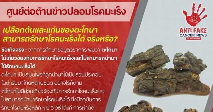“เปลือกต้น และแก่นของตะโกนาสามารถรักษาโรคมะเร็ง”