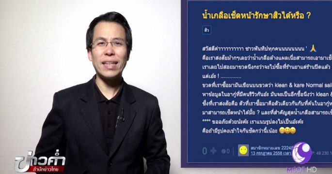 บนสังคมออนไลน์มีการแชร์เคล็ดลับว่าใช้น้ำเกลือเช็ดหน้า ช่วยดูแลผิวหน้าให้สะอาดและรักษาสิวได้ เรื่องนี้จริงหรือไม่ ติดตามจากศูนย์ชัวร์ก่อนแชร์