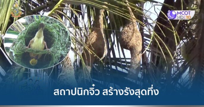 นกกระจาบหัวเหลือง นกช่างสาน สถาปนิกจิ๋ว สร้างรังบนต้นมะพร้าวนับร้อยรัง