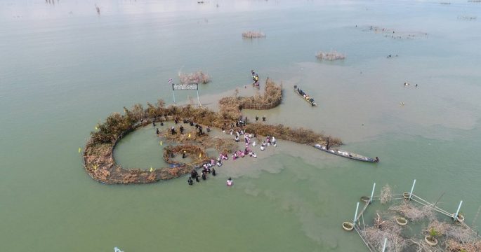 กลุ่มชาวประมงสิงหนคร ร่วมทำกิจกรรมสร้างบ้านปลากลางทะเลสาบสงขลาเป็นสัญลักษณ์เลข “๙” ด้วยความซาบซึ้งในพระมหากรุณาธิคุณเป็นล้นพ้น ตามแนวพระราชปณิธานของความยั่งยืน