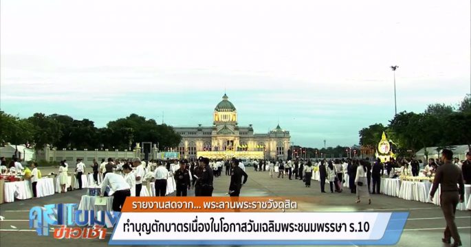 นายกฯ พร้อม ครม.ร่วมพิธีทำบุญตักบาตรเนื่องในโอกาสวันเฉลิมพระชนมพรรษาสมเด็จพระเจ้าอยู่หัว ที่พระลานพระราชวังดุสิต โดยมีประชาชนแต่งชุดสีขาวนวลติดโบดำร่วมทำบุญตักบาตรอย่างเนืองแน่น