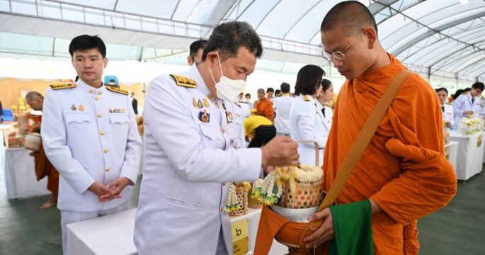 ก.มหาดไทย ทำบุญตักบาตร น้อมรำลึกวันคล้ายวันพระบรมราชสมภพ 5 ธันวาคม