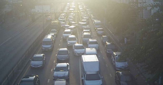 การจราจรเช้าวันศุกร์ ถนนลาดพร้าว จากแยกรัชดา-ลาดพร้าว มุ่งหน้าไปแยกลาดพร้าว รถมาก