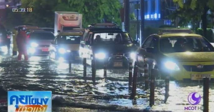 ฝนถล่ม กทม. ต่อเนื่อง 8 ชม. ส่งผลน้ำท่วมขังรอระบายหลายพื้นที่ ถนนบางสายน้ำสูง 30 ซม. แนะเลี่ยงเส้นทางลาดพร้าว งามวงศ์วาน และรัชดาฯ ปริมาณฝนสูงสุดอยู่ที่เขตวังทองหลาง 130 มม.