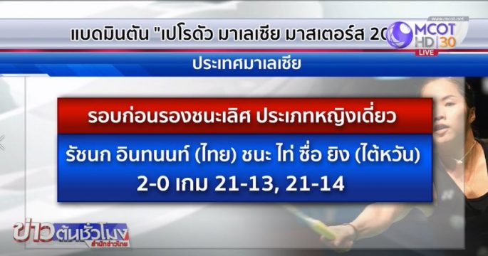 “น้องเมย์” รัชนก อินทนนท์ ล้มนักแบดมินตันมือ 1 ของโลก คว้าแชมป์แรกของปีได้สำเร็จ ที่มาเลเซีย