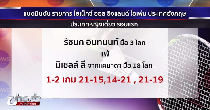 “น้องเมย์” รัชนก อินทนนท์ นักแบดมินตันขวัญใจชาวไทย มือวางอันดับ 3 ของโลก แพ้นักหวดมือรองจากแคนนาดา ตกรอบแรกแบดมินตันออลอิงแลนด์