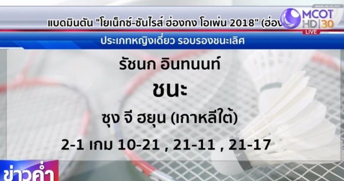 รัชนก อินทนนท์ ล้างตาชนะคู่ปรับ ซุง จี ฮยุน จากเกาหลีใต้ หลังแพ้รวด 2 เกมล่าสุด ผ่านเข้ารอบชิงชนะเลิศ ในศึกแบดมินตัน ฮ่องกง โอเพ่น