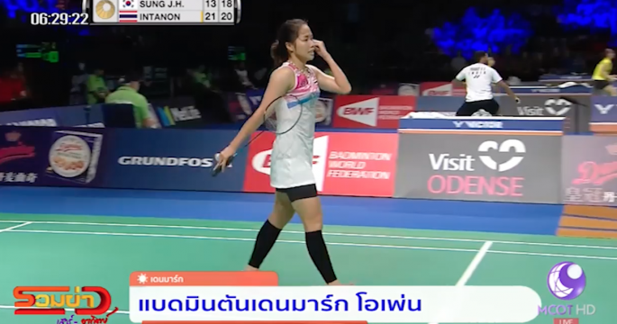 น้องเมย์ รัชนก อินทนนท์ นักแบดสาวมือ 1 ของไทย ตบเอาชนะ ซุง จี ฮุน จากเกาหลีใต้ ผ่านเข้ารอบรองชนะเลิศแบดมินตันเดนมาร์ก โอเพ่น