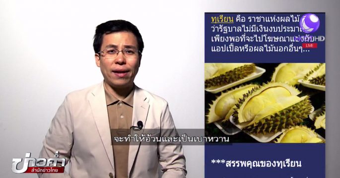 ชัวร์ก่อนแชร์ : ประโยชน์ของการกินทุเรียนแทนอาหารเช้า จริงหรือ?