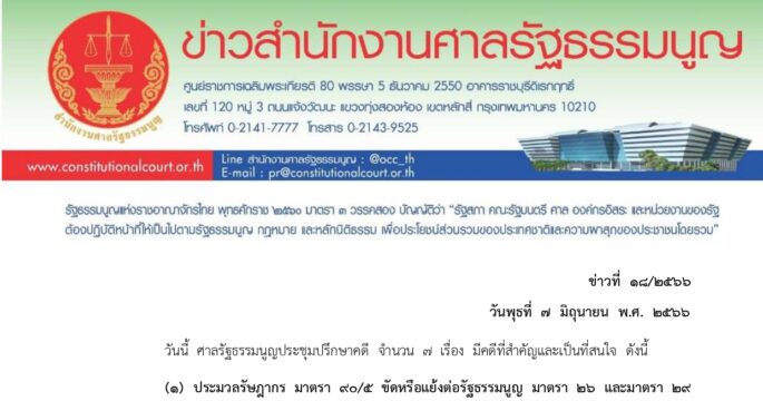 ศาลรัฐธรรมนูญ 7 มิ.ย. – มติศาลรัฐธรรมนูญ 2 มาตรา พ.ร.บ.มาตรการของฝ่ายบริหารในการป้องกันและปราบปรามการทุจริต ไม่ขัด รธน. วันนี้ (7 มิ.ย.) ศาลรัฐธรรมนูญโดยมติเสียงข้างหน้า 8 ต่อ 1 วินิจฉัยว่า พ.ร.บ.มาตรการของฝ่ายบริหารในการป้องกันและปราบปรามการทุจริต 2551 มาตรา 40 และมาตรา 41 ไม่ขัดหรือแย้งต่อรัฐธรรมนูญ มาตรา 26 ในกรณีดังกล่าวศาลปกครองสงขลาส่งคำโต้แย้งของนางชะรัตน์ เทพสิงห์ ในคดีหมายเลขดำที่ บ. 6 7/2565 ขอให้ศาลรัฐธรรมนูญวินิจฉัยตามรัฐธรรมนูญ มาตรา 212 ว่า พ.ร.บ.มาตรการของฝ่ายบริหารในการป้องกันและปราบปรามการทุจริต 2561 มาตรา 40 วรรคหนึ่ง ที่บัญญัติว่า เมื่อคณะกรรมการ ป.ป.ท. มีมติว่าเจ้าหน้าที่ของรัฐผู้ใดกระทำการทุจริตในภาครัฐและเป็นกรณีมีมูลความผิดทางวินัยให้ประธานกรรมการส่งรายงานและเอกสารที่มีอยู่ พร้อมทั้งความเห็นไปยังผู้บังคับบัญชาหรือผู้มีอำนาจแต่งตั้งถอดถอนผู้ถูกกล่าวหาผู้นั้น เพื่อพิจารณาโทษทางวินัยตามฐานความผิดที่คณะกรรมการ ป.ป.ท. ได้มีมติ โดยไม่ต้องแต่งตั้งคณะกรรมการสอบสวนวินัยอีก ในการพิจารณาโทษทางวินัยแก่ผู้ถูกกล่าวหาให้ถือว่ารายงานเอกสารและความเห็นของคณะกรรมการ ป.ป.ท. เป็นสำนวนการสอบสวนทางวินัยของคณะกรรมการสอบสวนวินัยตามกฎหมายระเบียบหรือข้อบังคับ ว่าด้วยการบริหารงานบุคคลของผู้ถูกกล่าวหานั้นๆ แล้วแต่กรณี วรรคสอง ที่บัญญัติว่า สำหรับผู้ถูกกล่าวหา ซึ่งไม่มีกฎหมายระเบียบหรือข้อบังคับเกี่ยวกับวินัยเมื่อคณะกรรมการ ป.ป.ท. […]