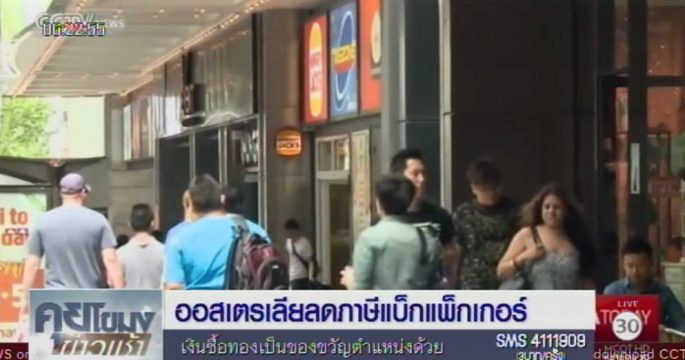 รัฐบาลออสเตรเลียลดการจัดเก็บภาษีจากแบ็กแพ็กเกอร์ที่เป็นกลุ่มนักท่องเที่ยวและทำงานลงมาอยู่ที่ 15% ต่ำกว่าแผนเดิมที่จัดเก็บสูงถึง 32.5%