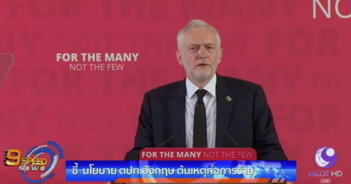 นายเจเรมี คอร์บิน พรรคฝ่ายค้านของอังกฤษ วิจารณ์นโยบายต่างประเทศของรัฐบาลอังกฤษเป็นต้นเหตุก่อการร้ายในประเทศ