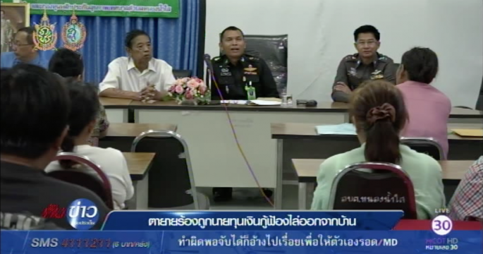 ตายายร้องถูกนายทุนเงินกู้นอกระบบทำเรื่องฟ้องขับไล่ออกจากบ้าน พร้อมกับเสนอเงื่อนไขให้ซื้อคืนในราคา 7 แสนบาท เจ้าหน้าที่นัดไกล่เกลี่ย 7 ก.ย.นี้