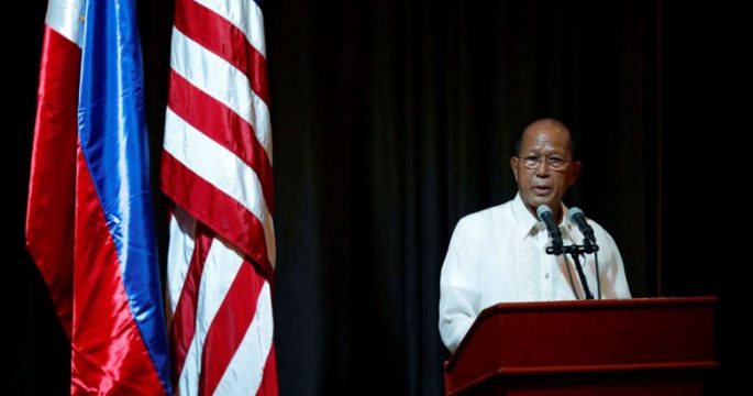 รักษาการรัฐมนตรีกลาโหมสหรัฐให้การต้อนรับนายเดลฟิน โลเรนซานา รัฐมนตรีกลาโหมฟิลิปปินส์ที่อาคารเพนตากอน