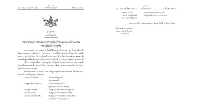 มีพระบรมราชโองการโปรดเกล้าฯ รัฐมนตรีใหม่แล้ว