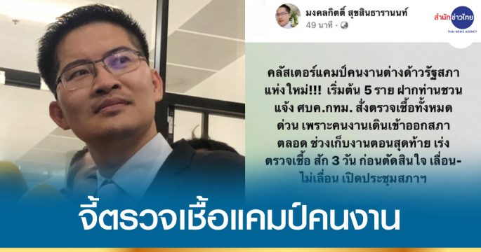 “มงคลกิตติ์” โพสต์เฟซบุ๊ก จี้ ศบค.กทม.สั่งตรวจเชื้อโควิด-19 คลัสเตอร์แคมป์คนงานต่างด้าวรัฐสภาแห่งใหม่โดยด่วน