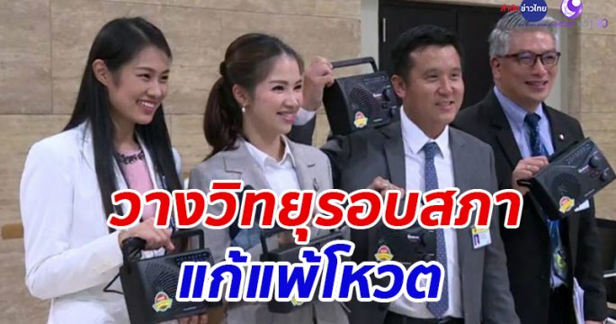 ส.ส. พปชร. โชว์วิทยุ เตรียมวางตามจุดต่างๆ ในอาคารรัฐสภา แก้ปัญหาไม่ได้ยินเสียงห้องประชุมสภาฯ ทำฝ่ายรัฐบาลแพ้เสียงลงมติ