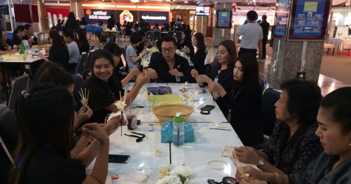 ข้าราชการรัฐสภา ประดิษฐ์ดอกไม้จันทน์ 9,999 ดอก ใช้ในพระราชพิธีถวายพระเพลิงพระบรมศพ พระบาทสมเด็จพระปรมินทรมหาภูมิพล อดุลยเดช