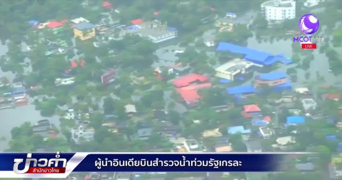 นายกรัฐมนตรีอินเดียขึ้นเฮลิคอปเตอร์สำรวจความเสียหายของเหตุน้ำท่วมครั้งรุนแรงที่สุดในรอบ 1 ศตวรรษในรัฐเกรละ ทางภาคใต้ ซึ่งคร่าชีวิตประชาชนแล้วอย่างน้อย 324 คน โดยเช้าวันนี้ระดับน้ำท่วมเริ่มลดลง และฝนมีแนวโน้มตกน้อยลงตั้งแต่วันพรุ่งนี้เป็นต้นไป
