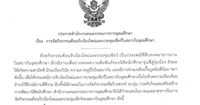 คืบหน้าสอบรุ่นพี่ สั่งรุ่นน้องถอดเสื้อ กิจกรรมรับน้อง