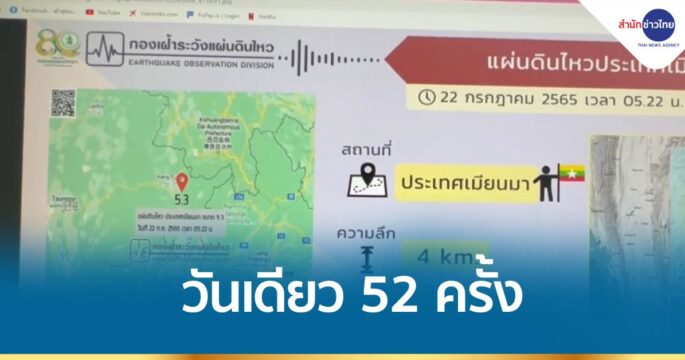 แผ่นดินไหวเมียนมาเขย่าเชียงราย-เชียงใหม่ รับรู้แรงสั่นสะเทือน บางพื้นที่เตียงสั่นถึงกับลุกวิ่งหนีกลางดึก ด้าน ปภ.สรุปสถานการณ์ตั้งแต่วานนี้ เวลา 06.00 น. จนถึงวันนี้เวลาเดียวกัน พบการเกิดแผ่นดินไหวศูนย์กลางอยู่ที่เมียนมา 52 ครั้ง