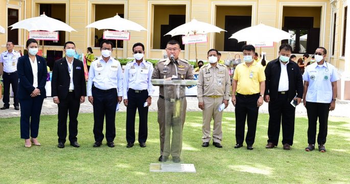 เจ้าหน้าที่จัดเตรียมสถานที่ในพิธีวางศิลาฤกษ์แท่นฐานพระบรมราชานุสาวรีย์พระบาทสมเด็จพระบรมชนกาธิเบศร มหาภูมิพลอดุลยเดชมหาราช บรมนาถบพิตร ซึ่งพระบาทสมเด็จพระเจ้าอยู่หัว และสมเด็จพระนางเจ้าฯ พระบรมราชินี จะเสด็จพระราชดำเนินในช่วงเย็นวันนี้