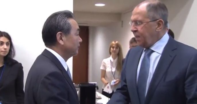 นายหวัง อี้ รัฐมนตรีต่างประเทศกล่าวกับนายเซอร์เก ลาฟรอฟ รัฐมนตรีต่างประเทศรัสเซียระหว่างพบกันในที่ประชุมยูเอ็นว่า ปัญหาเกาหลีเหนือต้องคลี่คลายอย่างสันติ