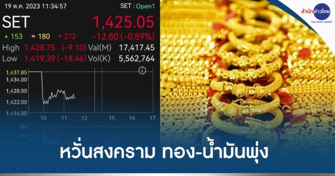 ตลาดหุ้นไทยเช้านี้ร่วงตามตลาดต่างประเทศ หลังจากอัตราผลตอบแทนพันธบัตรสหรัฐ (Bond yield) พุ่งทำนิวไฮในรอบ 16 ปี และความกังวลสถานการณ์สงครามระหว่างอิสราเอลและกลุ่มฮามาสจะมีความรุนแรงมากขึ้น ส่งผลให้มีแรงขายหุ้น Big Cap ออกมามาก ส่วนราคาน้ำมัน-ทองคำพุ่งขึ้น ทองคำไทยทำนิวไฮ