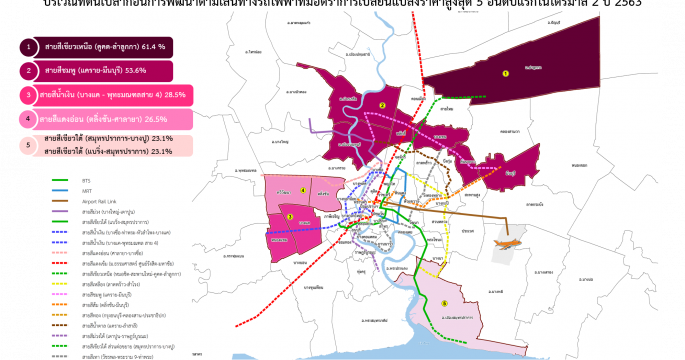 ดัชนีราคาที่ดินเปล่าก่อนการพัฒนาในกรุงเทพฯ-ปริมณฑล ไตรมาส 2 ปี 2563 ปรับเพิ่มขึ้นกว่า 30% แนวรถไฟฟ้าสายสีเขียวเหนือ (คูคต – ลำลูกกา) ที่ยังไม่ก่อสร้าง ครองแชมป์ราคาปรับเพิ่มสูงสุด 5 ไตรมาสติดต่อกัน