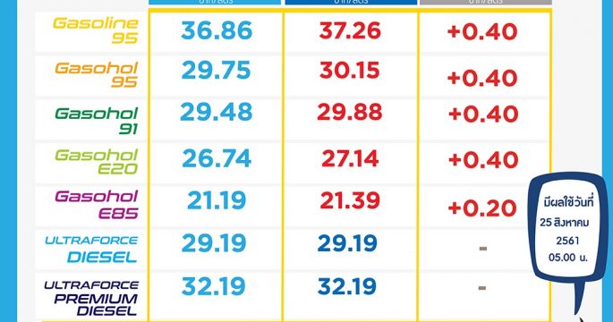 ปตท.และบางจาก ประกาศปรับขึ้นราคาน้ำมันกลุ่มเบนซิน 20-40 สตางค์ต่อลิตร มีผลพรุ่งนี้