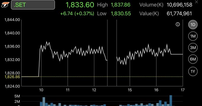 หุ้นไทยบวก 6.74 จุด เก็งกำไรหุ้นน้ำมัน หลังราคาน้ำมันโลกขยับขึ้น