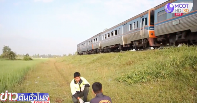 เจ้าหน้าที่เข้าตรวจสอบเหตุ ชายไม่ทราบชื่อนอนพาดตัวกับรางรถไฟ ให้รถไฟทับร่างจนเสียชีวิต