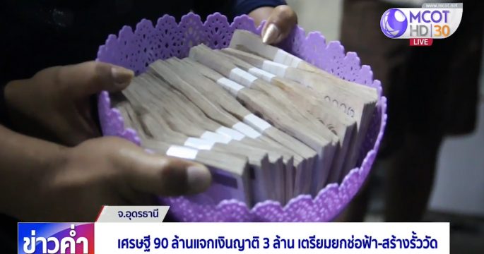 เศรษฐีใหม่เมืองอุดรฯ ที่ถูกสลากฯ 90 ล้านบาท แจกเงินญาติคนละ 100,000 บาท พร้อมให้พ่อแม่อีก 1.5 ล้านบาท รวมแล้ว 3 ล้านบาท ด้านญาติผู้ใหญ่อวยพรงวดหน้าขอให้ถูกรางวัล 180 ล้านบาท