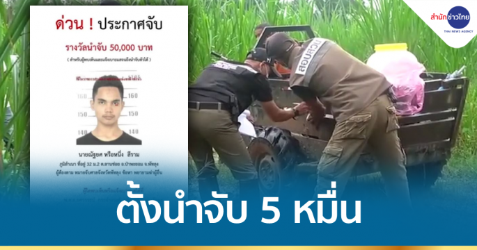 ตำรวจพัทลุง ตั้งรางวัลนำจับ 50,000 บาท ผู้ต้องหายิงถล่มคนงานตัดหญ้า 3 ครั้ง ชี้เป็นบุคคลอันตราย อาจใช้มาตรการขั้นเด็ดขาด หากต่อสู้หรือขัดขืนการจับกุม