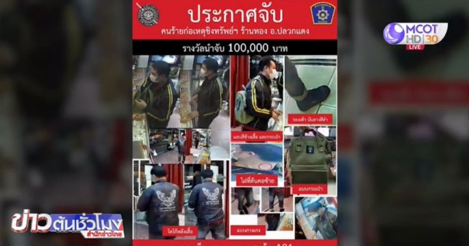 ตำรวจ สภ.ปลวกแดง ตั้งรางวัลนำจับ 100,000 บาท สำหรับผู้แจ้งเบาะแสจับกุมคนร้ายชิงทอง 14 บาท ในพื้นที่ อ.ปลวกแดง หลังผ่าน 3 วัน ยังไร้วี่แวว