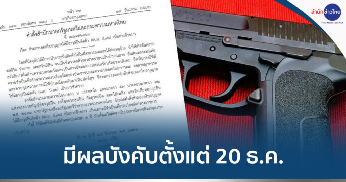 มีผลวันนี้ คำสั่งห้ามออกใบอนุญาตพกอาวุธปืน 1 ปี สิ้นสุด 19 ธ.ค.67