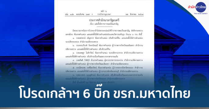 โปรดเกล้าฯ 6 บิ๊ก ขรก.มหาดไทย “ขจรเกียรติ” นั่งอธิบดีกรมที่ดิน