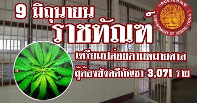 ราชทัณฑ์ เริ่มปล่อยตัว-เปลี่ยนแปลงโทษผู้ต้องขังตามหมายศาล ในคดีความผิดเกี่ยวกับพืชกัญชา หลังประกาศกระทรวงฯ มีผลบังคับใช้แล้ววันนี้ หมายปล่อย 3,071 ราย
