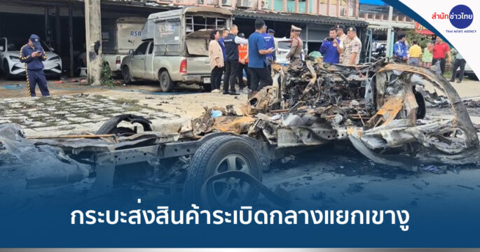 กระบะส่งสินค้าระเบิดกลางแยกเขางู รถเสียหายกว่า 10 คัน