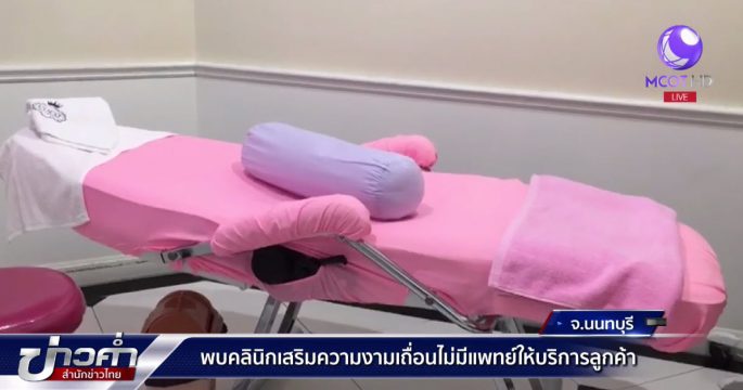 กำลังเจ้าหน้าที่สำนักงานสาธารณสุขจังหวัดนนทบุรี ตำรวจ บก.ปคบ. ค้นสถานเสริมความงามย่านราชพฤกษ์ พบผู้ให้บริการลูกค้าไม่ใช่แพทย์