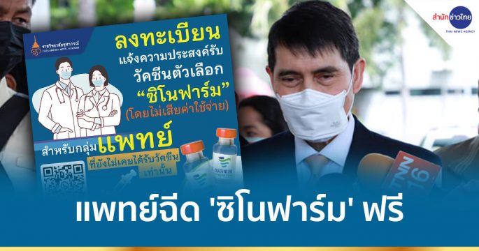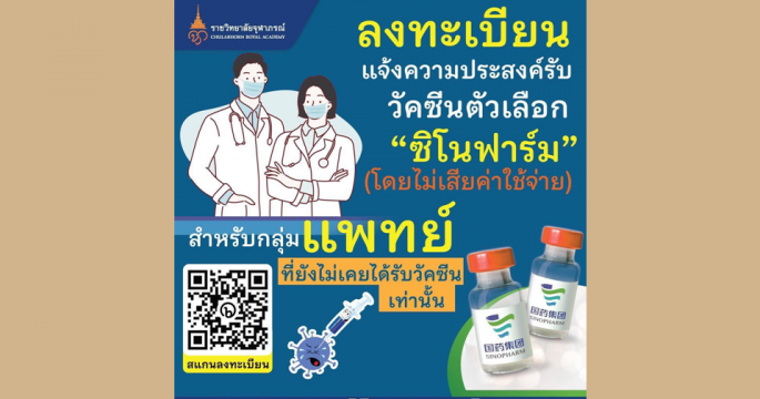 เลขาฯ ราชวิทยาลัยจุฬาภรณ์ แจ้งข่าวถึงกลุ่มแพทย์ที่ยังไม่ได้รับวัคซีน สามารถลงทะเบียนฉีด ‘ซิโนฟาร์ม’ ไม่เสียค่าใช้จ่าย