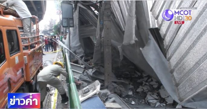 เจ้าหน้าที่เข้าตรวจสอบอาคารย่านรามคำแหงถล่ม ขณะรื้อถอน มีผู้ได้รับบาดเจ็บ 2 คน เบื้องต้นสั่งให้ยุติการรื้อถอนจนกว่าการตรวจสอบจะเสร็จสิ้น