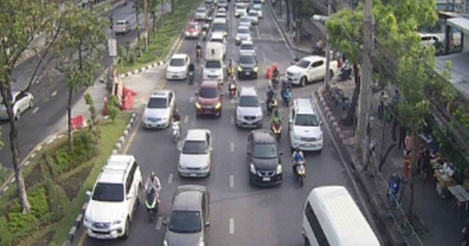 สวพ.FM91 รายงานการจราจรเช้าวันจันทร์ ถ.อโศก-ดินแดง จากแยกพระรามเก้า มุ่งหน้าแยกอโศก-เพชรบุรี หนาแน่นทั้ง 2 ด้าน