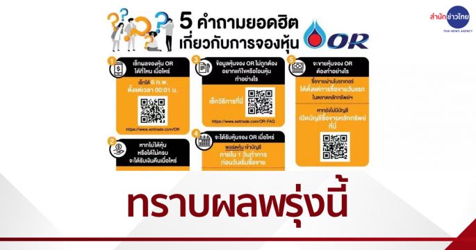 รายย่อยผู้จองหุ้น OR รับทราบผลจัดสรรหุ้น IPO วันพรุ่งนี้ (6 ก.พ.)