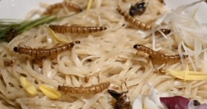 ชาวญี่ปุ่นและนักท่องเที่ยวจำนวนมากเดินทางมาเข้าคิวบริเวณภายนอกร้านนากิราเมงในกรุงโตเกียววานนี้ เพื่อลิ้มลองเมนูสุดพิสดารราเมงท้อปปิ้งด้วยแมลง