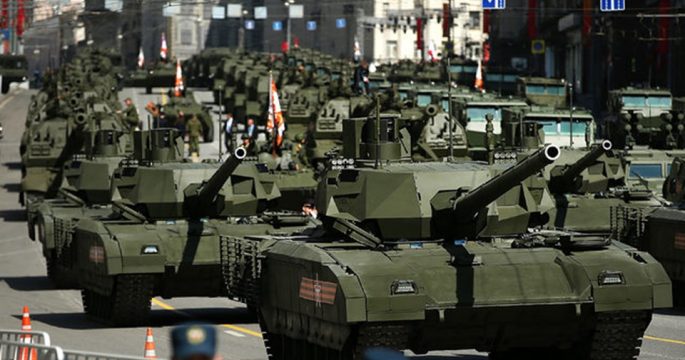 รัสเซียแสดงยุทโธปกรณ์หนักรุ่นล่าสุดที่จัตุรัสแดงในกรุงมอสโกวันนี้ในพิธีสวนสนามประจำปีเนื่องในวันรำลึกชัยชนะของกองทัพอดีตสหภาพโซเวียตที่มีต่อกองทัพนาซีเยอรมัน
