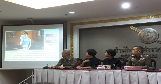 รถเมล์ คะนึงนิจ จักรสมิทธานนท์ ดาราสาว และเบอร์รี่หญิง เน็ตไอดอล เข้าให้ปากคำกับพนักงานสอบสวน กรณีเป็นพรีเซ็นเตอร์โฆษณาให้กับผลิตภัณฑ์เมจิกสกิน