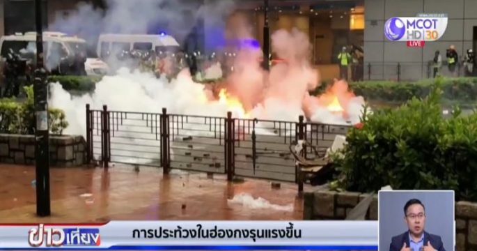 การชุมนุมประท้วงฮ่องกงทวีความรุนแรงมากขึ้นทำให้ตำรวจต้องใช้มาตรการสลายการชุมนุมที่เข้มงวดขึ้น ขณะที่รัฐบาลประณามการใช้ความรุนแรงของผู้ประท้วง