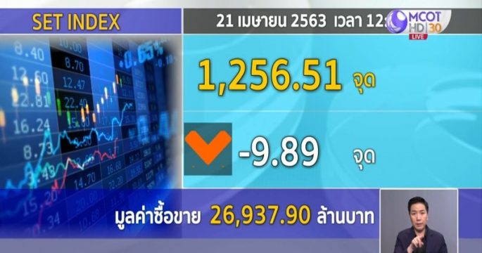 ตลาดหลักทรัพย์ปิดวันนี้ที่ระดับ 1,255.94 จุด ลดลง 108.63 จุด (-7.96%) มูลค่าการซื้อขาย 103,623.75 ล้านบาท